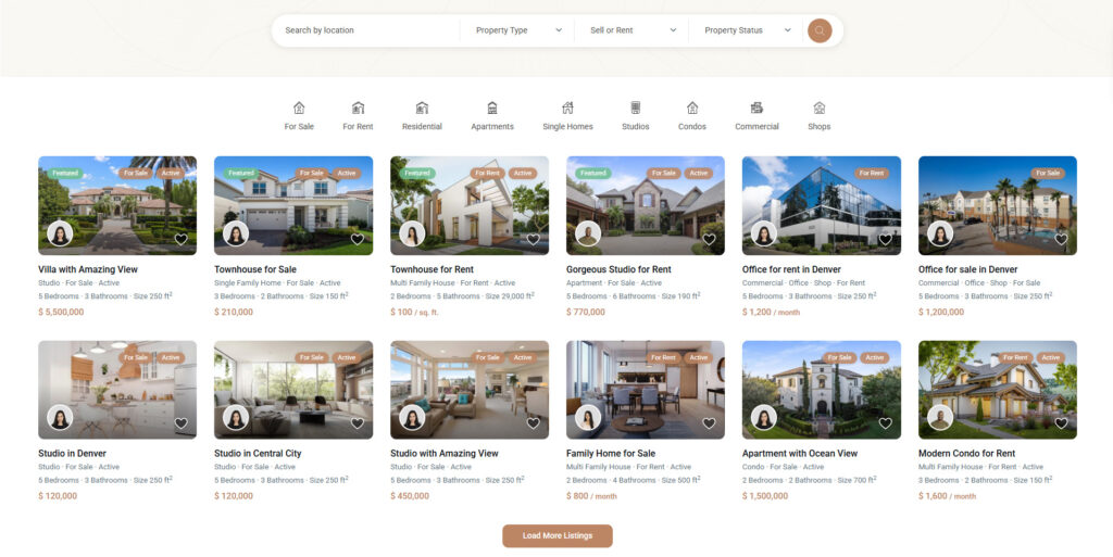 - Agency & Developer Profiles: Dedicated professional profiles allow agents and agencies to showcase all their listings in one place, build trust, and market their brand effectively.